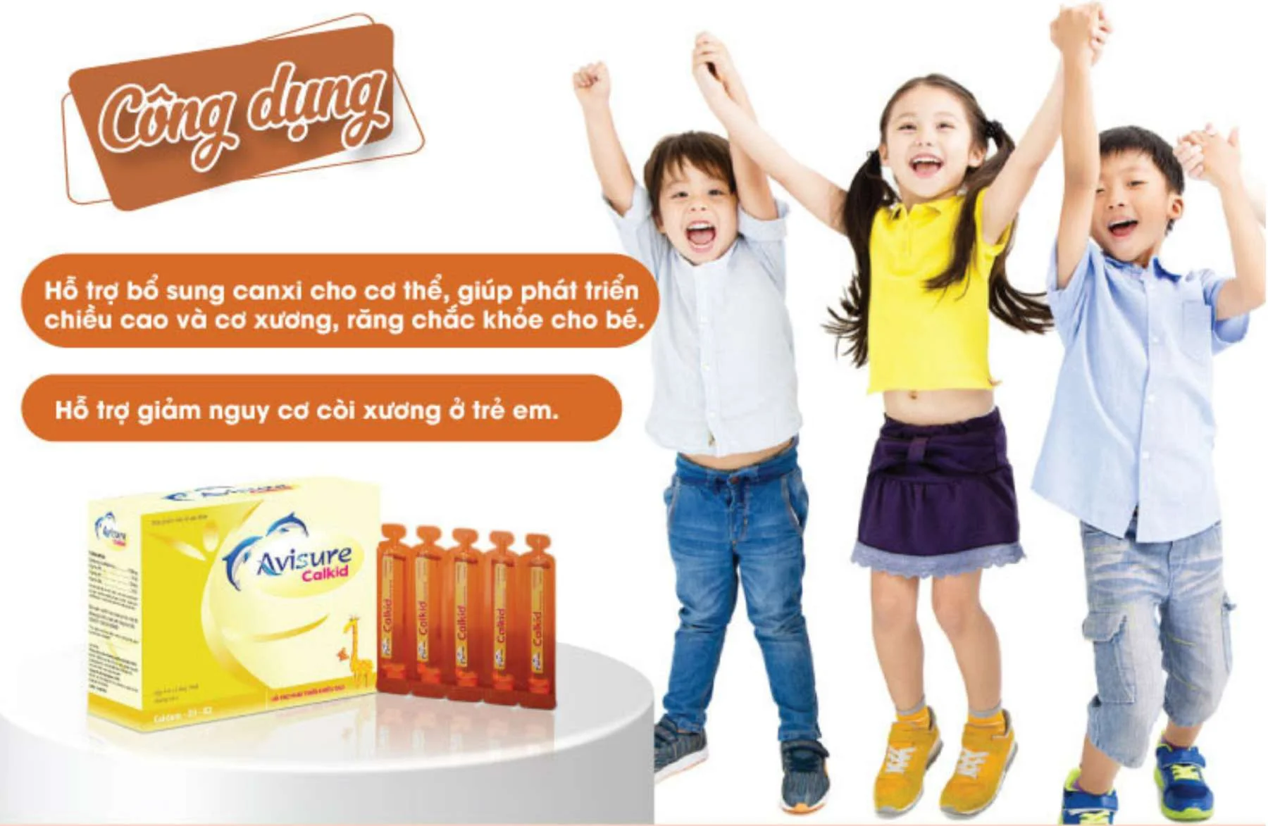 Avisure Calkid là một sản phẩm bổ sung canxi hiệu quả giúp hỗ trợ sự phát triển của xương và răng, giúp trẻ em có một cơ thể khỏe mạnh và phát triển tốt nhất.