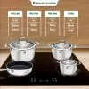 - Tương Thích Với Mọi Loại Bếp: Bộ nồi được thiết kế để sử dụng được trên tất cả các loại bếp, kể cả bếp từ, với kích thước đa dạng từ nhỏ đến lớn, đáp ứng mọi nhu cầu nấu nướng của gia đình bạn.