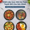 - Chất liệu inox 304 an toàn tuyệt đối, không chứa PFOA và các acid gây hại, không phơi nhiễm thực phẩm ngay cả ở nhiệt độ cao.