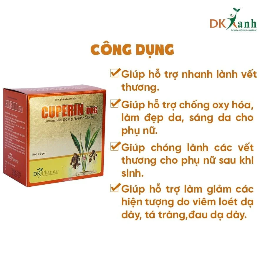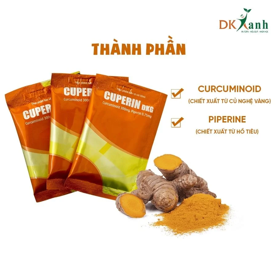 Sản phẩm chứa Curcumin và Piperine – hai thành phần quan trọng được biết đến với khả năng hỗ trợ sức khỏe đáng kể. Curcumin được chiết xuất từ nghệ và Piperine từ tiêu đen, không chỉ hỗ trợ làm lành vết thương mà còn chống lại các tác nhân gây hại từ oxy hóa, bổ sung máu và làm đẹp da, mang lại làn da tươi sáng và khỏe mạnh sức mạnh. Sản phẩm còn hỗ trợ giảm triệu chứng viêm loét dạ dày tá tràng, giúp cải thiện chất lượng cuộc sống