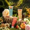 - Tẩy tế bào chết dưỡng hồng vùng nhạy cảm hương nước hoa Happiness (tuýp xanh) chứa nhiều thành phần tự nhiên như chiết xuất lô hội, axit glycolic (AHA), vitamin E, và các loại quả như mâm xôi, dâu tây, kiwi, táo, đào, đu đủ, dưa leo.