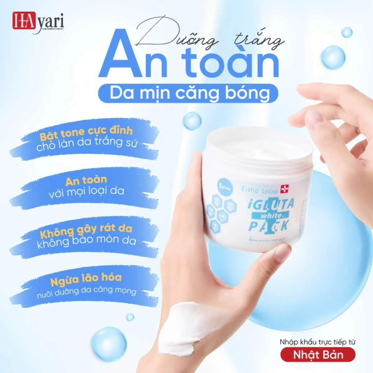 Với thành phần độc đáo và hiệu quả cao, sản phẩm Ủ trắng IGLUTA White Pack của thương hiệu Hayari là lựa chọn hàng đầu cho việc tái tạo làn da của bạn. Dưới đây là những điểm nổi bật về sản phẩm:
