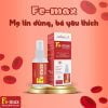 Sắt Fe Max là sản phẩm chứa sắt dạng xịt, giúp bổ sung sắt nguyên tố cần thiết cho cơ thể. Thành phần của sản phẩm được chia thành các nhát xịt có liều lượng sắt khác nhau, giúp dễ dàng điều chỉnh liều dùng phù hợp với từng đối tượng.