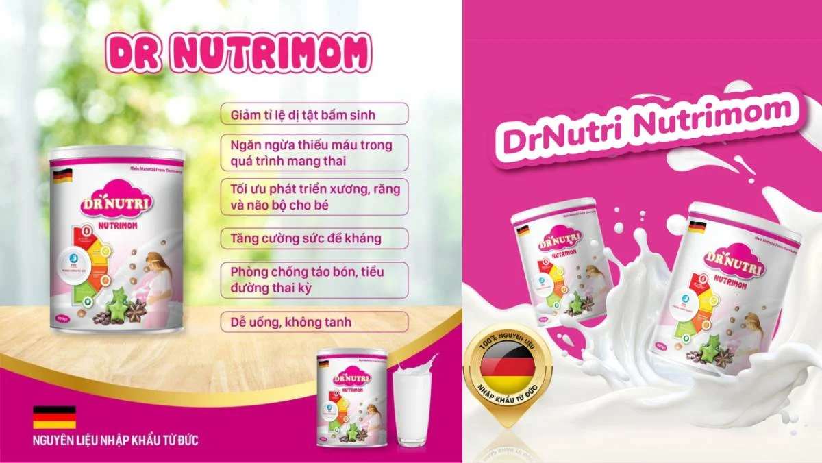 Dr Nutri Mom là sữa bột được thiết kế đặc biệt để bổ sung dinh dưỡng cho phụ nữ trong giai đoạn chuẩn bị mang thai, đang mang thai và cho con bú. Sản phẩm giúp cung cấp các chất dinh dưỡng cần thiết, hỗ trợ mẹ tiêu hóa và hấp thu tốt, tăng cường sức đề kháng tự nhiên cho cả mẹ và thai nhi. Ngoài ra, Dr Nutri Mom cũng hỗ trợ tăng cường chất lượng sữa mẹ, đồng thời hỗ trợ sự phát triển não bộ và hệ xương của thai nhi.