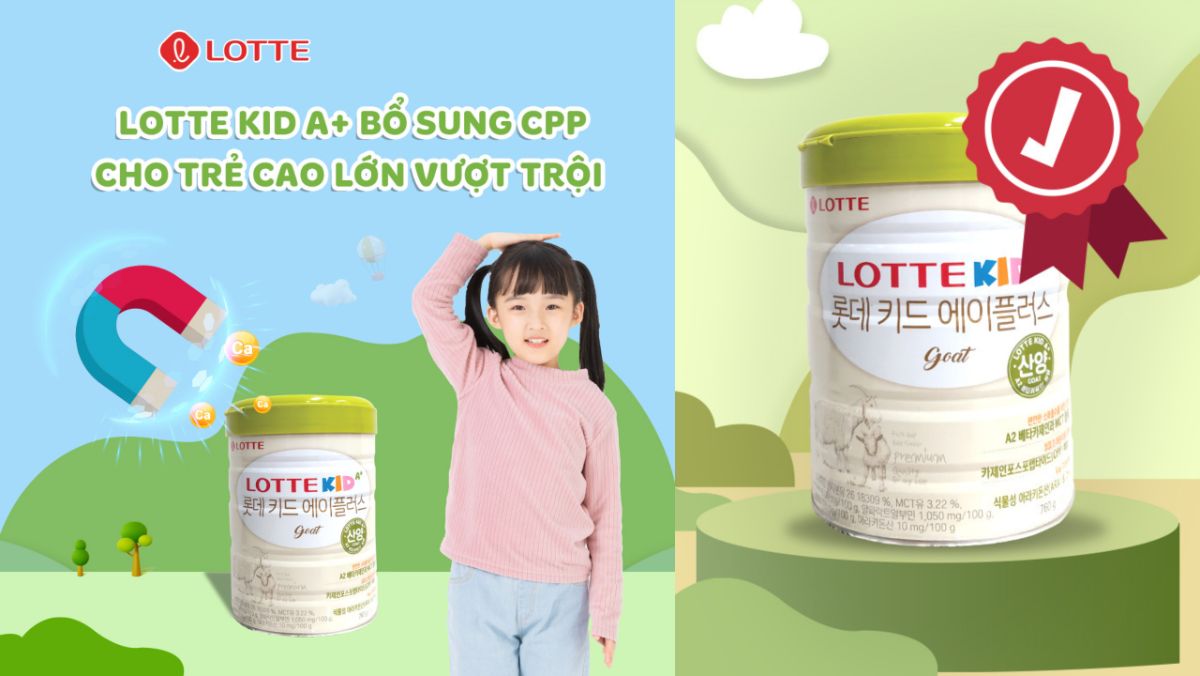 Sữa dê Lotte Kid A+ không chỉ cung cấp dinh dưỡng mà còn là một lựa chọn hoàn hảo để đảm bảo bé phát triển toàn diện, với mục tiêu tối đa hóa chiều cao, sức khỏe và sự phát triển tổng thể.
