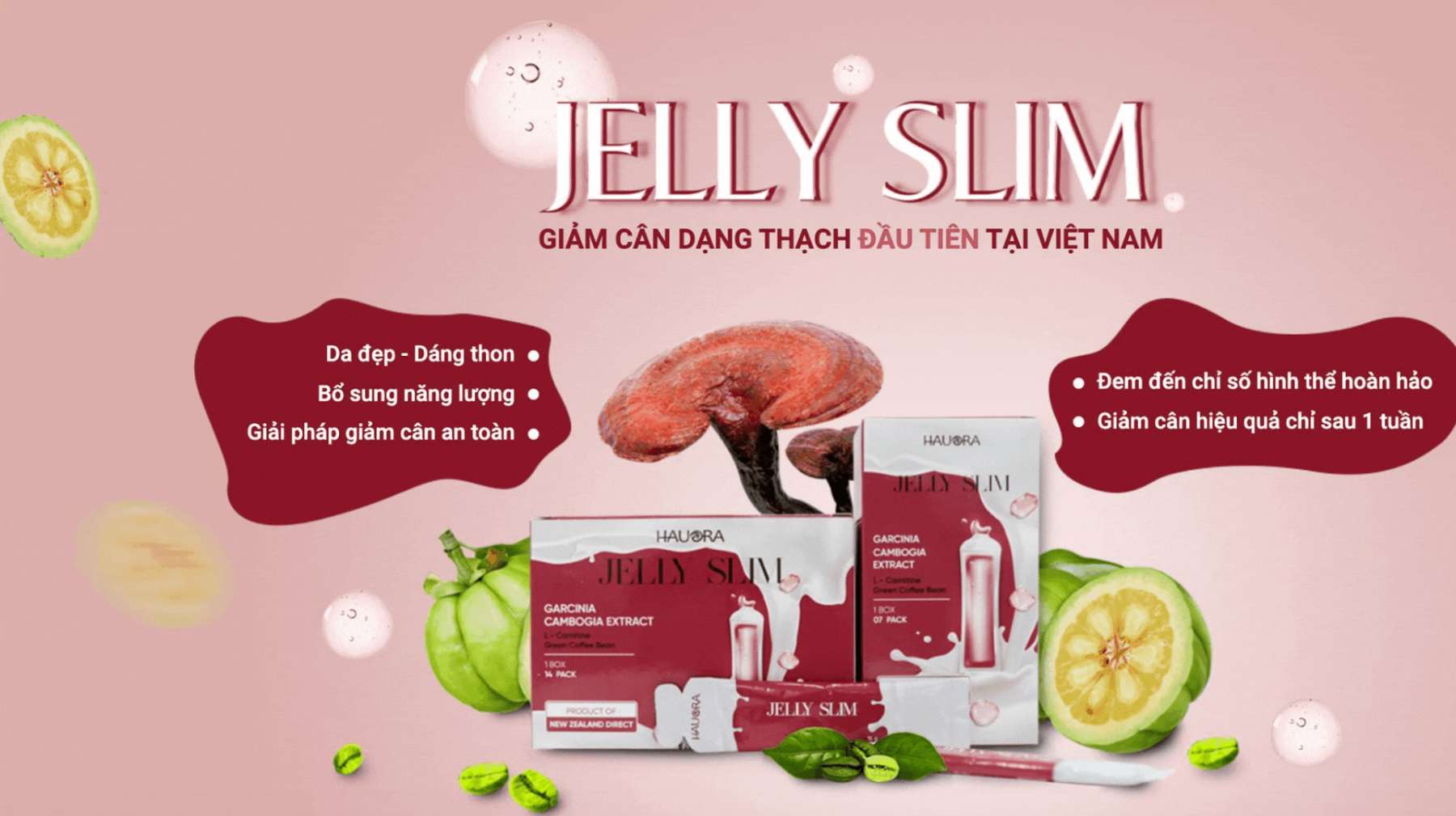 Jelly Slim là sản phẩm dạng thạch tươi được thiết kế đặc biệt để hỗ trợ giảm cân, sử dụng các thành phần tự nhiên, đặc biệt là chiết xuất Garcinia cambogia nhập khẩu từ New Zealand. Ngoài ra, sản phẩm còn giúp làn da mịn màng và đẹp hơn, hạn chế tình trạng chảy xệ sau khi giảm cân thành công.