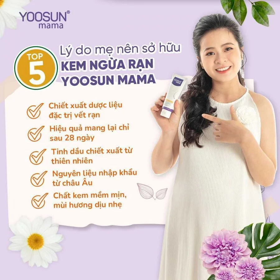 Với các thành phần tự nhiên được kết hợp một cách khoa học và hiệu quả, Yoosun Mama là một sản phẩm đáng tin cậy để giúp các mẹ sau sinh có một làn da khỏe mạnh, mịn màng và đàn hồi.