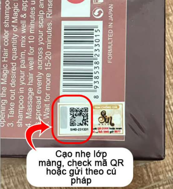 Tại mỗi hộp sản phẩm Sin Hair, bạn sẽ tìm thấy một tem chứa mã số hoặc mã QR code dán phía sau. Để kiểm tra sản phẩm, bạn có thể cạo nhẹ lớp bạc trên tem và sau đó sử dụng ứng dụng Zalo để quét mã QR.